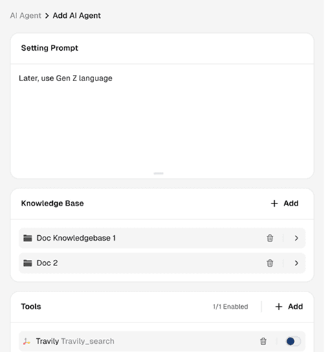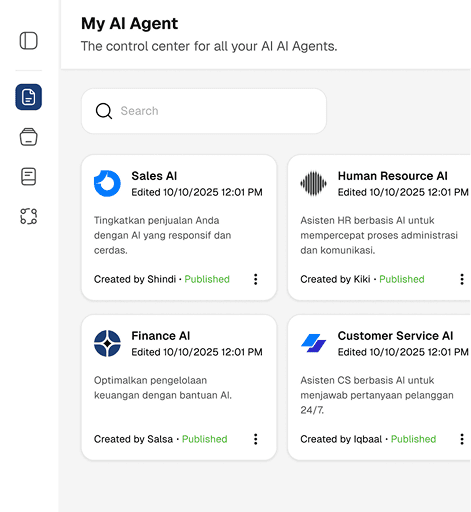 Platform AI no-code yang membantu bisnis membuat dan menjalankan Agen AI dengan mudah, tanpa kerumitan teknis.