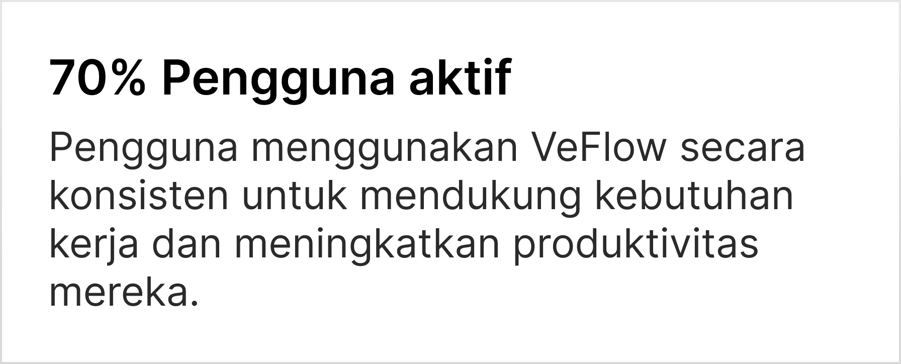 Dengan otomatisasi berbasis AI, bisnis tidak perlu menambah banyak staf untuk tugas berulang. VeFlow membantu mengurangi biaya operasional secara signifikan sekaligus meningkatkan produktivitas tim.