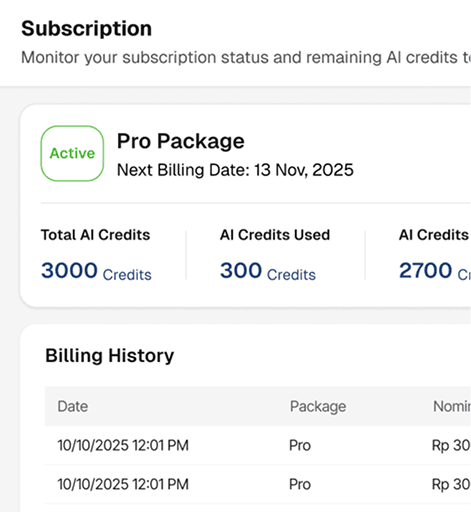 Prioritas kami membantu proses bisnis Anda lebih cepat dan efisien dengan teknologi AI yang dirancang untuk mengoptimalkan operasional harian Anda.